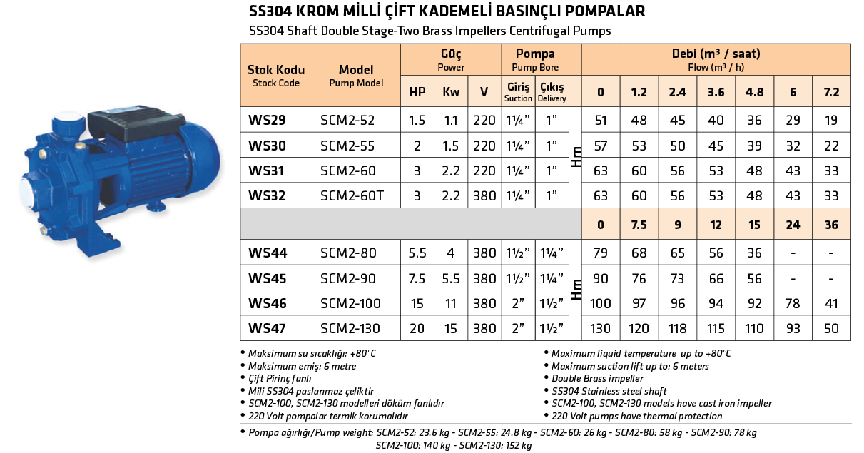 SS304 KROM MİLLİ ÇİFT KADEMELİ BASINÇLI POMPALAR