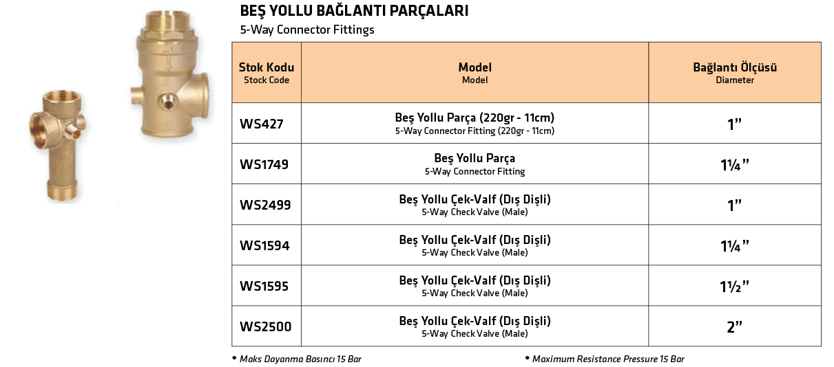 BEŞ YOLLU BAĞLANTI PARÇALARI
