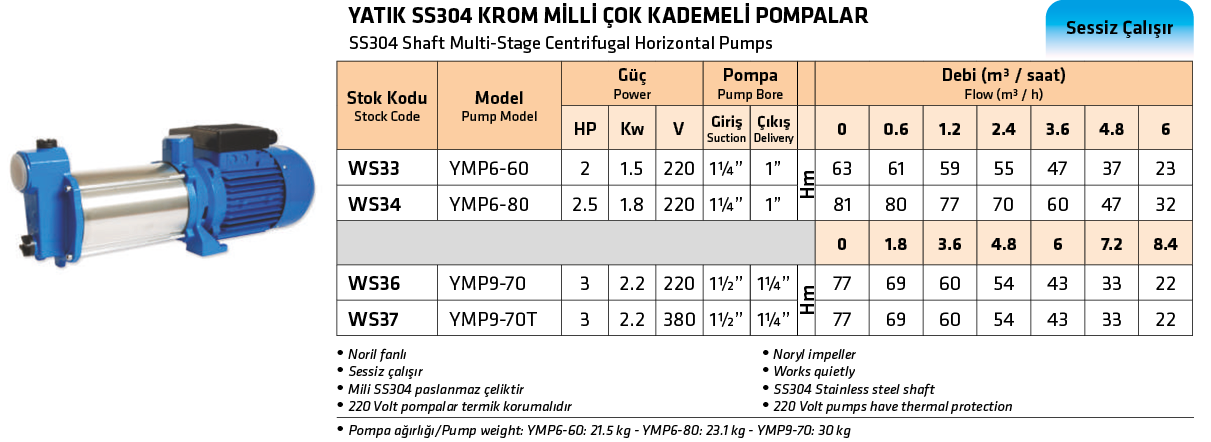 YATIK SS304 KROM MİLLİ ÇOK KADEMELİ POMPALAR