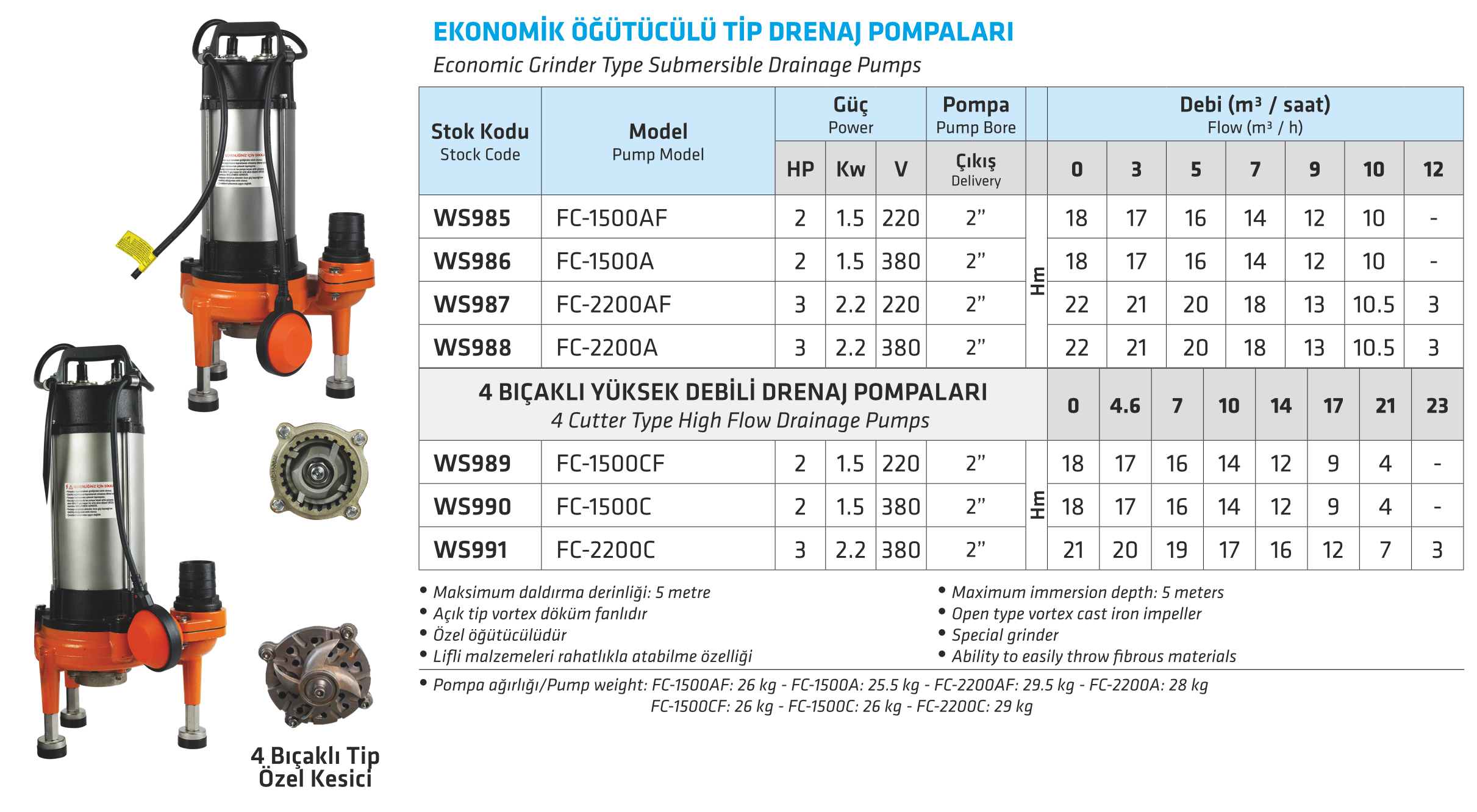 EKONOMİK ÖĞÜTÜCÜLÜ TİP DRENAJ POMPALARI