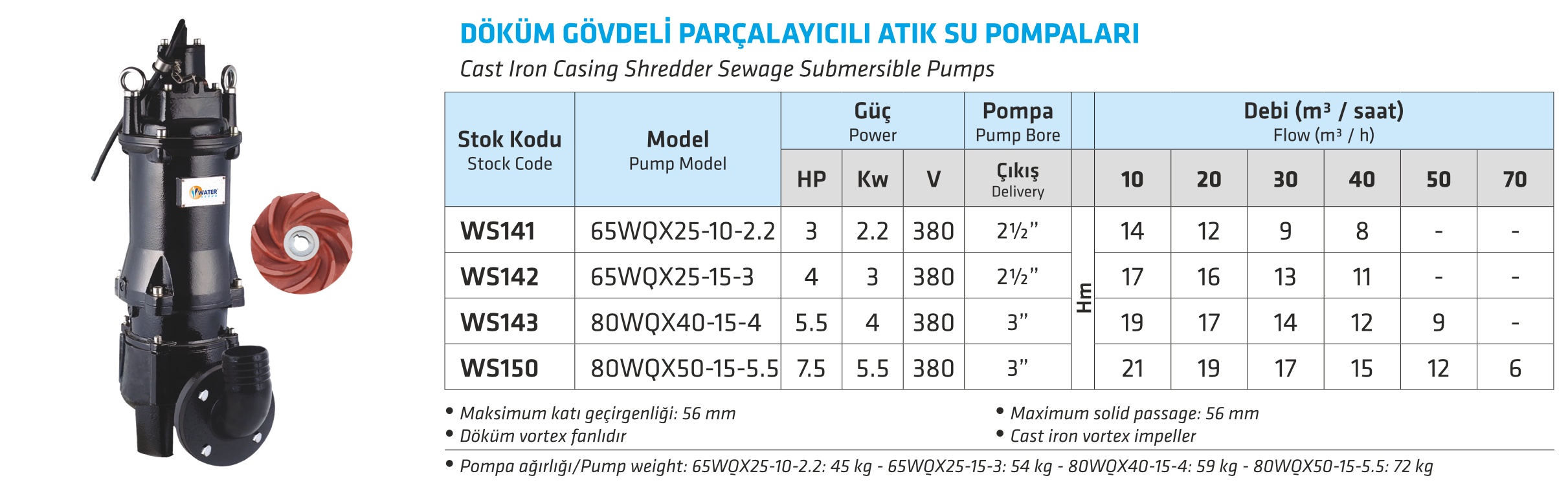 Döküm Gövdeli Yüksek Debili Atık Su Pompaları