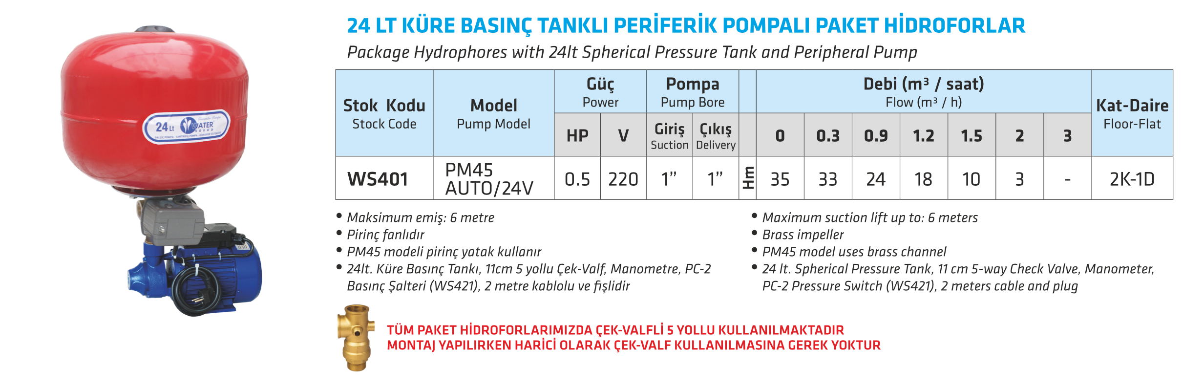 24 LT KÜRE BASINÇ TANKLI PERİFERİK POMPALI PAKET HİDROFORLAR