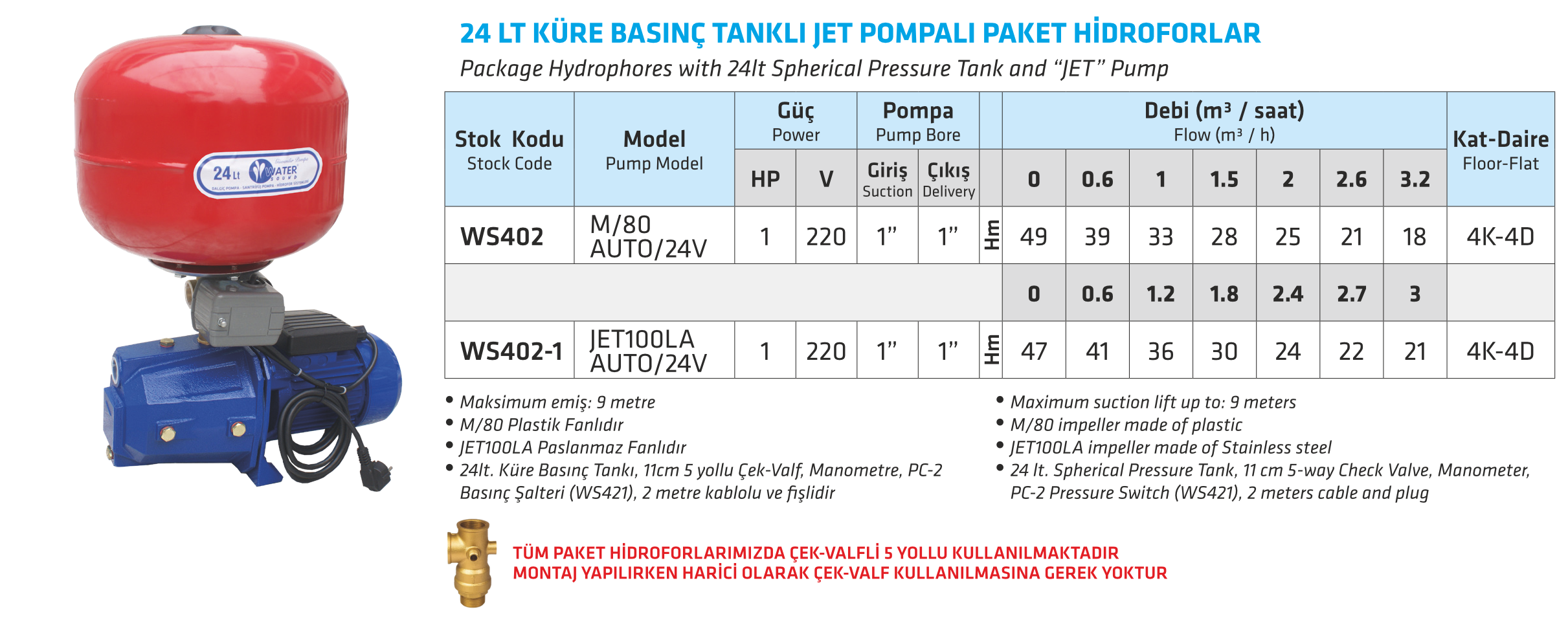 24 LT KÜRE BASINÇ TANKLI JET POMPALI PAKET HİDROFORLAR