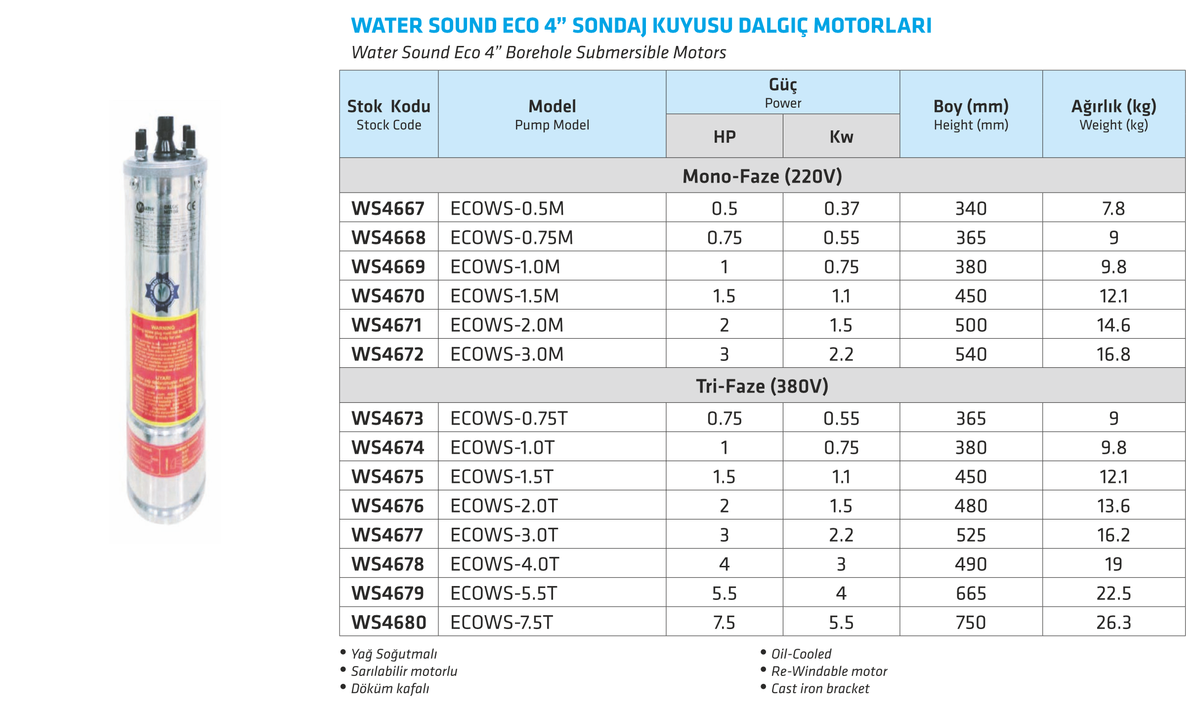 WATER SOUND ECO 4" SONDAJ KUYUSU DALGIÇ MOTORLARI